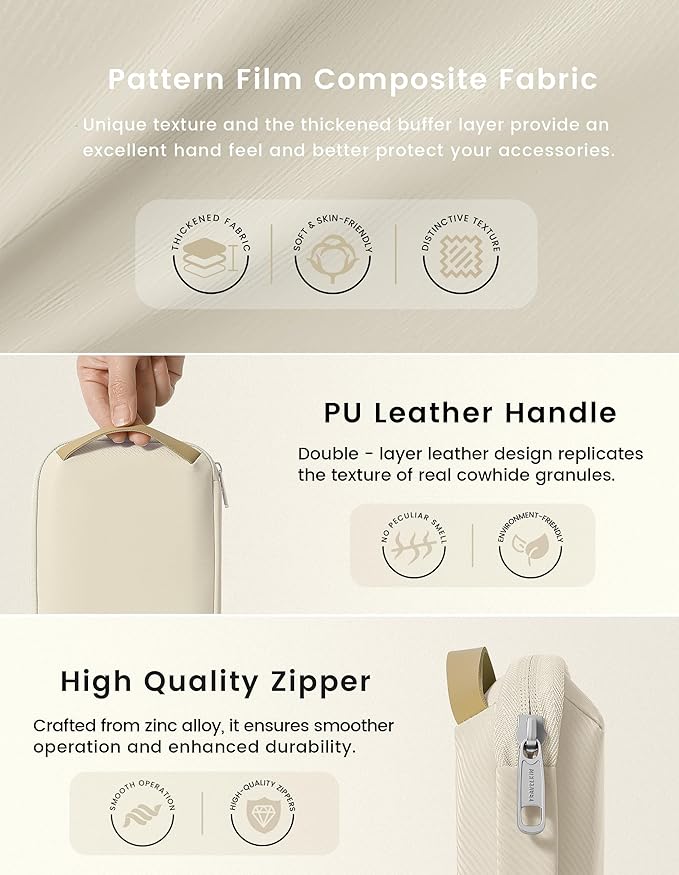 - Durable and lightweight tech case organizer: This small electronics organizer is crafted from high-quality polyester material that is scratch-resistant and lightweight. Besides, it features a sleek surface, offering a smooth tactile sensation