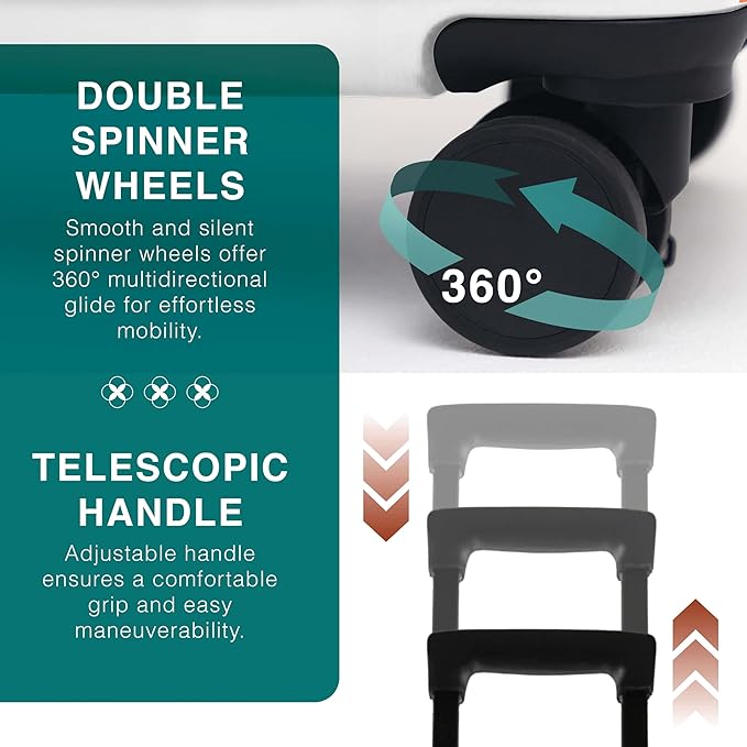 - Travel Luggage with Spinner Wheels: Our 28 inch luggage with spinner wheels provides smooth 360° movement. This rolling suitcase, hardshell luggage includes a telescoping handle, stainless steel name tag, and TSA lock.