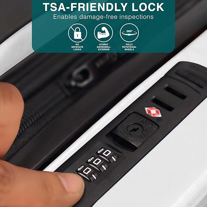 - Travel Suitcase with Wheels: Hardshell luggage sets like this white luggage set, that include rolling suitcases with wheels, are perfect for your travel needs as they include a large luggage suitcase, a small suitcase, and carry-on luggage.