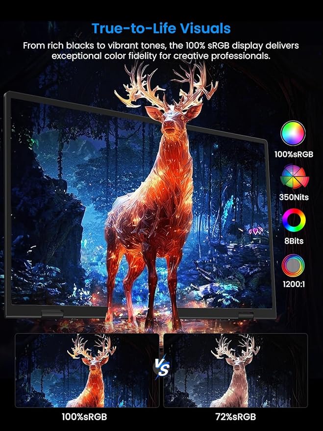 - Pro-Level Color Accuracy: Experience vivid visuals with 100% sRGB and ΔE<2 color calibration—ideal for designers, editors, and creatives who demand precise color reproduction.