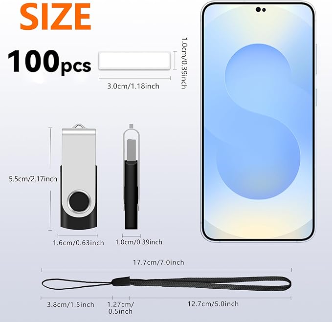 - WHAT YOU WILL GET: 100 Pack 8GB USB 2.0 flash drives bulk (Mixed Colors: Black Red Blue Green Purple) lable sheet and lanyard