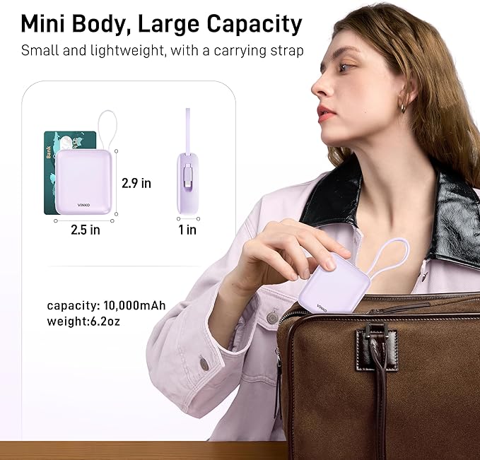 - COMPACT&PORTABLE: This portable charger power bank measures just 2.9 x 2.5 inches (credit-card size), offering a more compact overall footprint at only 176g. Its thoughtfully thicker build (1 inch) delivers greater capacity and rugged durability, while enhancing grip comfort. With a built-in cable and sleek design, this power bank slips effortlessly into any pocket,Perfect for daily commutes, travel, or outdoor adventures,quickly powers up your phone.