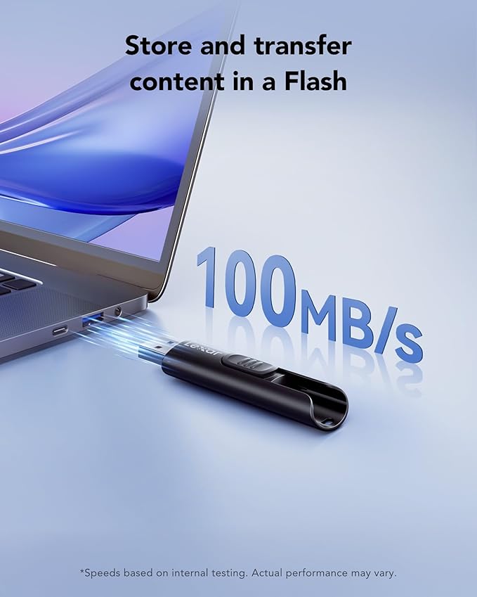 - Transfer speeds up to 100 MB/s: 10x faster than standard USB 2.0 drives; Based on internal testing, performance may vary depending upon the host device, interface, and usage conditions