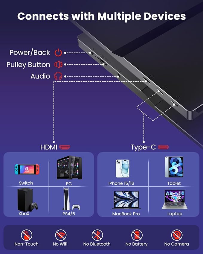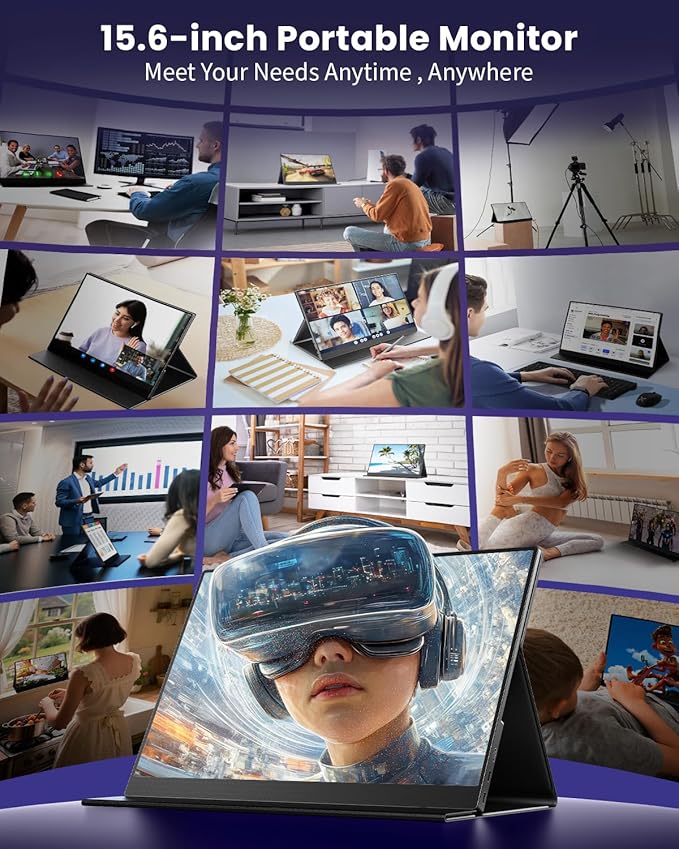 - 【Magnetic Smart Cover】Comes with a scratch-resistant smart cover made of a durable PU leather outer layer that can be used as a stand.Provides full protection and a bezel-less magnetic design for this portable computer monitor. Two grooves on the cover base allow you to choose at least one different viewing angle, reducing the hassle of installation.