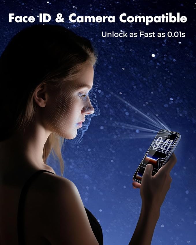- Perfect Fit & Case Friendly: Precisely cut to perfectly match your phone’s display, with edges designed slightly smaller than the screen. This prevents interference with Face ID and the front camera, while ensuring case compatibility and avoiding edge lift or bubbling.