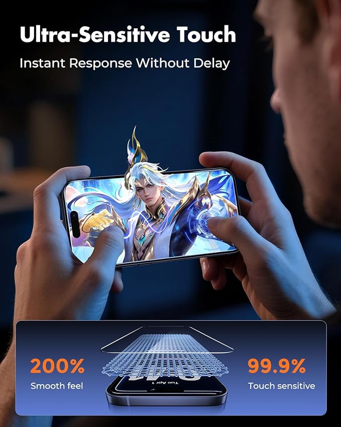 - Clarity & Sensitivity: Our ultra-thin screen protector is 0.01 inches thick, nearly invisible, and offers 99.9% clarity. Enjoy a vibrant display with silky smooth touch sensitivity for quick, natural responses.