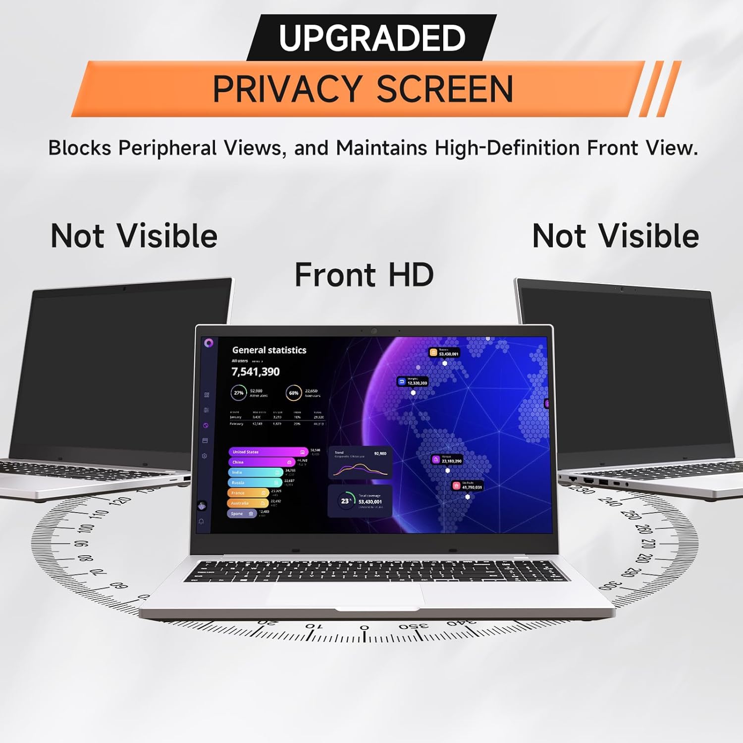 - 【Enhanced Privacy Filter】With unique, ultra-fine microlouver technology, our laptop privacy screen added a layer of security by keeping prying eyes away from password and document info while work around others, in public places, or near customers. A clear vision for you while others see a black screen – it gives you peace of mind knowing that your information and your computer are as safe as possible.