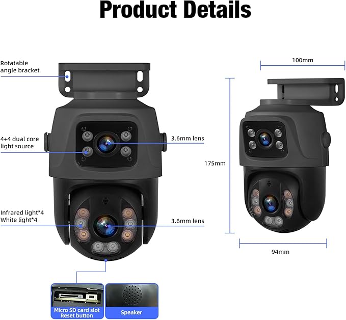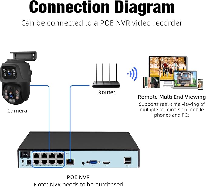 - PoE Dual Lens Security Camera & Wider 360°View – 1 fixed camera and 1 PT camera make sure take care any angle for review. When the pt camera tracking the motion, the fixed camera will stay still for more general view.One camera is all you require, making it a cost-effective choice for surveillance. 2 separate view, won't missing any details.