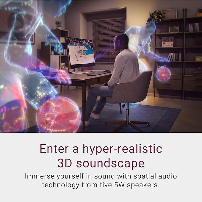- Experience hyper-realistic audio: Immerse yourself in sound with spatial audio technology from five 5W speakers. Enabled by AI-driven head-tracking, this feature follows your movements with pinpoint accuracy.