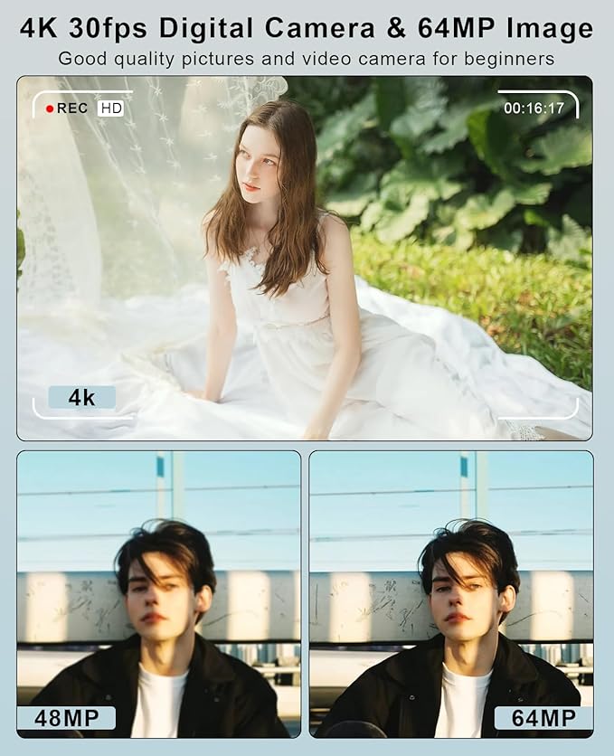 - 【5K 64MP Autofocus Vlogging Camera】Capture crisp, high-resolution images and ultra-clear 5K video with this 64MP digital camera for photography—perfect for vlogging, travel, and content creation. With autofocus and 18X digital zoom, every detail stays crisp and vibrant even from a distance.