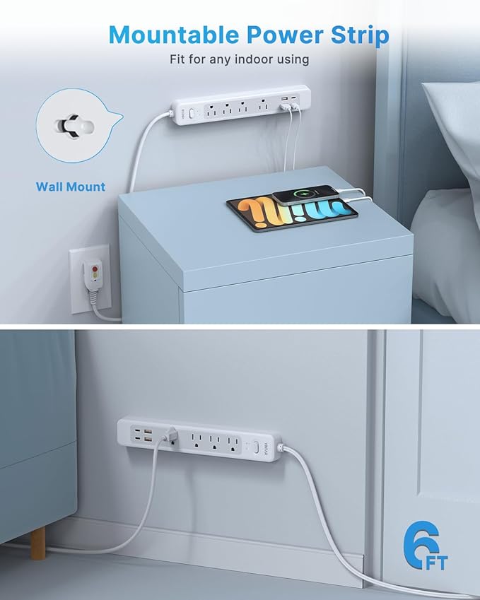 - Mountable Two Prong Power Strip: This two prong to three prong adapter measured only 10.3 x 1.57 x 1 inch. Equipped with two mounting holes allows the 6ft extension cable is stable in a variety of scenarios, including mounting to wall, workbenches, desk or under counters, saving desktop space for you