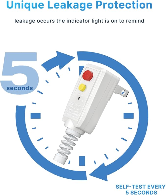 - GFCI Plug & Built-in Circuit Breaker: This 2 prong GFCI adapter plug has low power consumption and long service life. Features 6kv surge protection and lightning protection. 5-second automatic detection function ensures that in the event of a leakage or attack during a thunderstorm, it will automatically disconnect the power and illuminate the indicator light, to protect you and your family