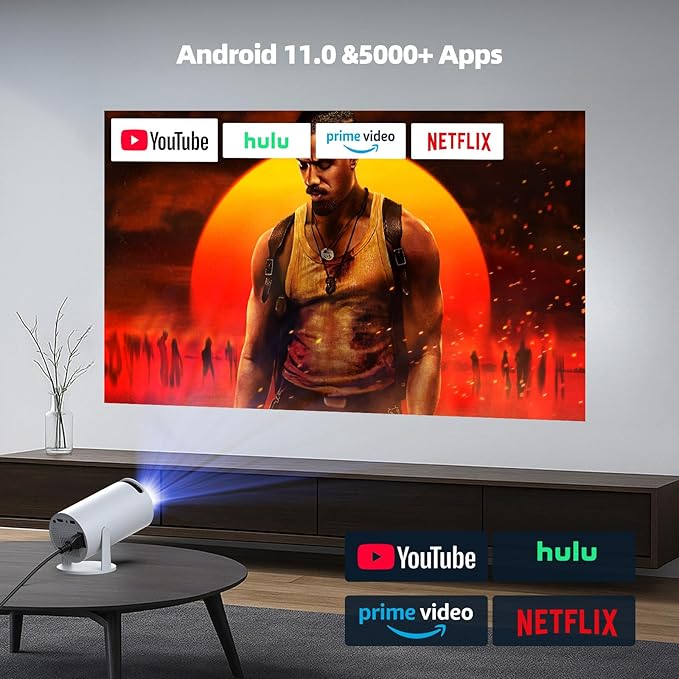 - 【Built-in Android TV 11.0 & 4K Decoding】Equipped with Android TV 11.0 system, this projector for bedroom allows you to download your favorite apps, including mainstream streaming apps such as N-F, YouTube, and Prime Video, and easily enjoy a massive collection of over 500,000 movies and TV shows. ( If you encounter a system update prompt, please confirm the update. Otherwise, some applications (such as D+) may be incompatible and unusable.) Proyector features LCD projection technology, 200 ANSI lumens brightness, and 1300:1 contrast ratio, and supports 1080P/4K decoding and native 720P resolution. The colors are vibrant and lifelike, restoring the true visual effect