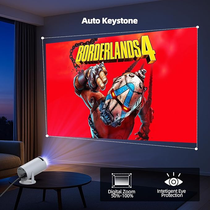 - 【Automatic Vertical Keystone & Manual Focus】The projector features automatic vertical keystone correction to ensure a perfect display at any vertical angle. If the image is blurry, you can also manually rotate the lens ring to adjust the lens focus, quickly adjusting the image to the best condition. Anyone of any age can easily use this projector. Please note: This feature only corrects vertically (up and down). It does not support 4-point or horizontal keystone correction, and it does not include auto focus. To adjust focus, please use the manual focus ring