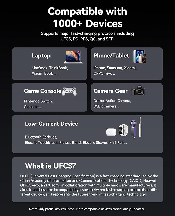 - All-in-One Universal Fast Charging Solution:Fast Charges Galaxy S25 Ultra 45W, iPhone 16 Pro, iPad Pro & 99.9% of Devices Under 140W, and USB-C1, USB-C2 and USB-A charge laptop, smartphone and headphones at the same time - no waiting time, no multiple chargers required with this USB C power bank ( If you use a third-party cable, please use a compatible third-party cable that supports 5A current and 100W power delivery)