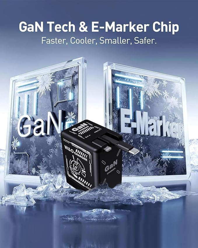 - High-Efficiency 45W GaN Charger: Featuring advanced Gallium Nitride (GaN) technology, this retractable charger has a high energy conversion rate of 92%, ensuring faster, more stable charging with less heat compared to traditional chargers.