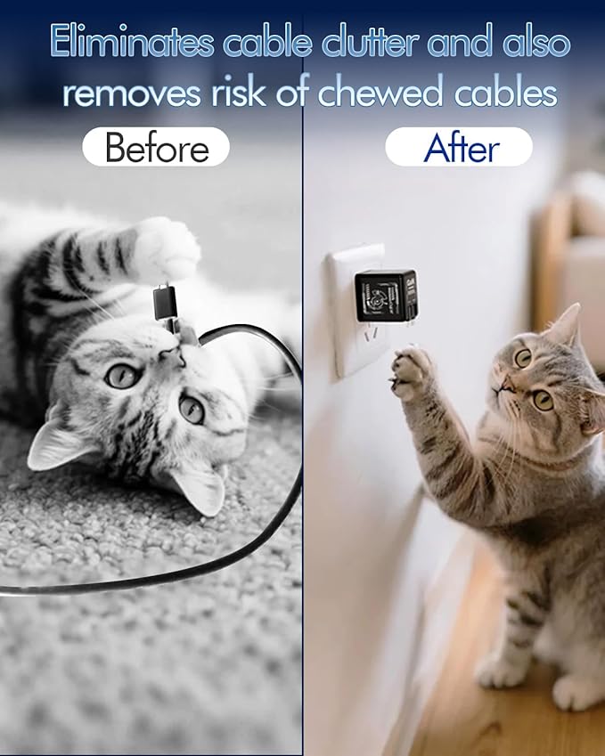 - No more chewed cords:If your pets love chewing on charging cords, this retractable iphone charger wall plug is the perfect solution! Not only does it provide fast charging, but it also protects your cables from being chewed by cats or other pets.