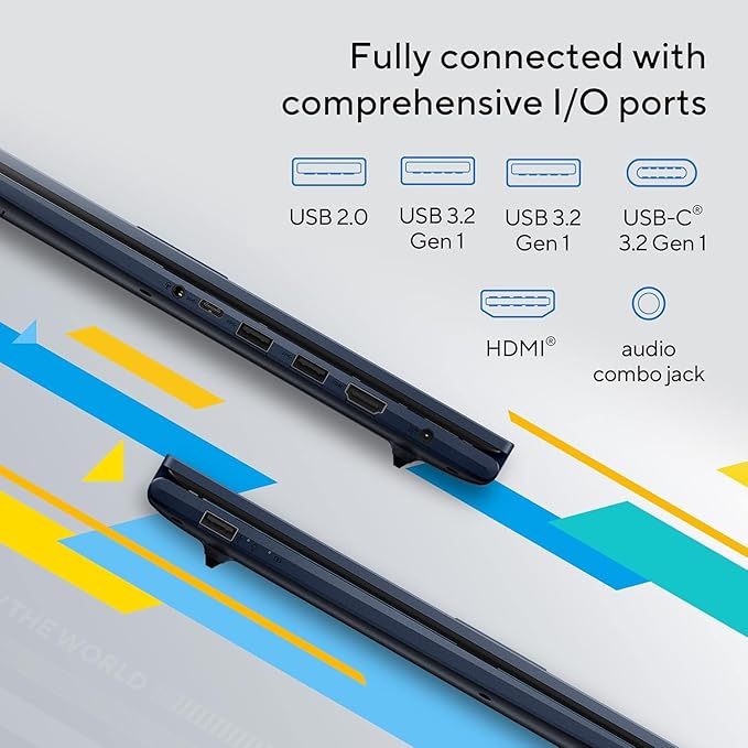 - [Comprehensive Connectivity] 1 x USB 2.0 Type-A, 1 x USB 3.2 Gen 2 Type-C, 2 x USB 3.2 Gen 2 Type-A, 1 x DC-in, 1 x HDMI, 1 x Headphone/Microphone Combo, Touchpad, Webcam, Wi-Fi