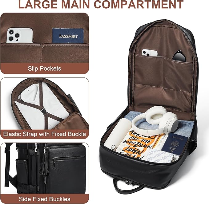 - Leather Backpack for Women: This womens backpack for work is made of high-quality PU vegan leather that can easily withstand rain and snow.The ergonomic shoulder straps with adjustable metal buckles effectively reduce strain on the shoulders,and the women laptop backpack with luggage strap to makes your traveling more convenient.This backpack laptop is an ideal choice for people who like short trips