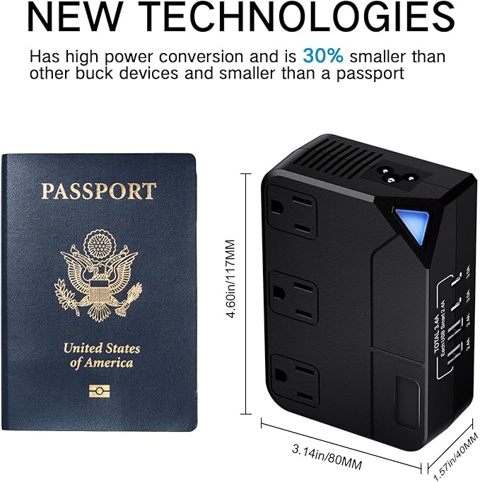 - PROTECT YOUR DEVICES -- The converter automatically shuts off in case of over-voltage, over-temperature, over-current, over-heat or short-circuit protection, no need to worry about damaging your devices.