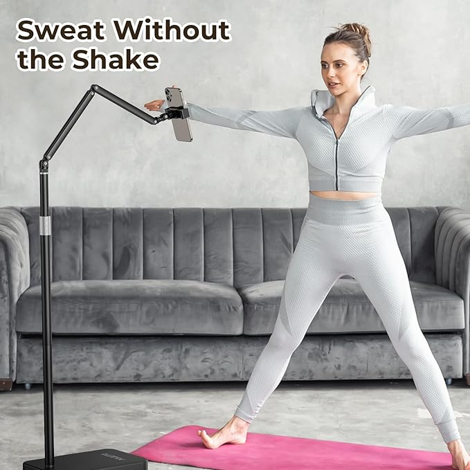 - 【Height & Angle Adjustable】Perfect your view: extend smoothly from 19 in (desk level) to 65 in (standing height). The telescopic arm offers full 360° horizontal rotation plus tilt adjustment for the tablet clamp. Achieve the ideal ergonomic position for comfort in any scenario, such as bedside use, overhead recording.