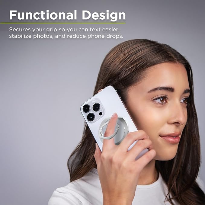 PureGear Magnetic Phone Grip Ring Stand, Magnetic Phone Ring Holder for MagSafe iPhone 16, 16Pro, 16Plus, 16ProMax, 15, 15Plus, 14, 14Pro, 14Pro Max, 13, 12, Adjustable Kickstand (Chrome Silver)