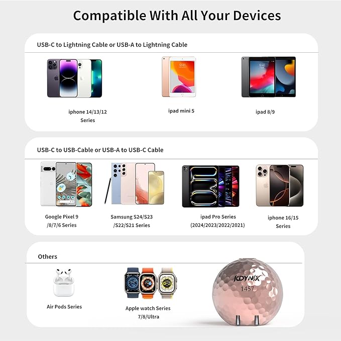 - 【Universal Compatibility & Warranty Support】This USB-C charging block is compatible with all smartphones and tablets, such as iPhone 14/13/12/11/X series, iPad, Samsung Galaxy, Google Pixel, AirPods, etc. (support PD3.0/QC3.0/Apple 2.4A/FCP/SCP/AFC). KDYNIX guarantees a 1-year warranty and 24/7 customer service support. If you have any concerns, please contact us through Amazon.