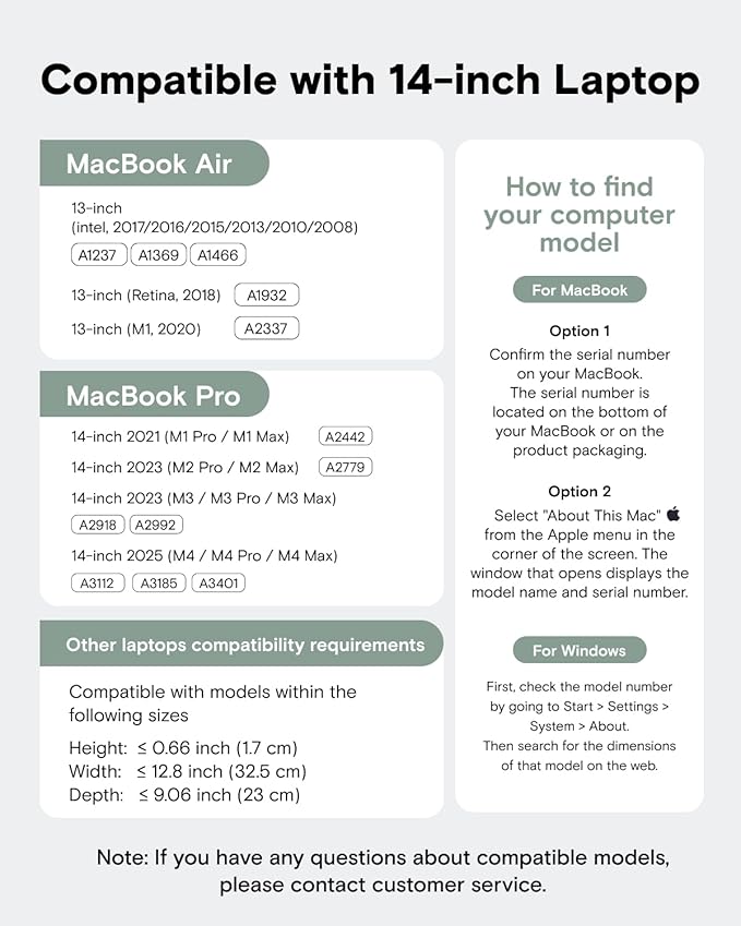 - Compatibility: Designed for 14-inch laptops. Laptop sleeve dimensions: 13.4 x 9.6 inch, Maximum compatible size: 12.8x 9.1 x 0.7 inch. Laptop sleeve Precisely fits MacBook Pro 14-in.2025 (M4/M4 Pro/M4 Max), MacBook Pro 14-in.(M3/M3 Pro/M3 Max, 2023 ), MacBook Pro 14-in.(M1 Pro/M1 Max, 2023), MacBook Pro 14-in.(M1 Pro/M1 Max, 2021), MacBook Air (intel, 2017/2020), MacBook Air (intel, 2017/2020)