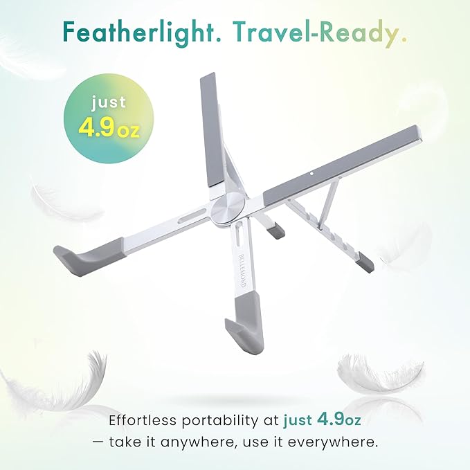 - πUltra-Lightweight & Durable Premium aluminum body weighs under 140g / 4.94oz. Sleek, sturdy, and built as a foldable laptop stand for everyday use.