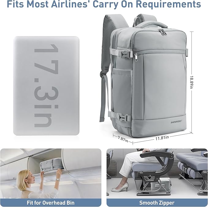 SHOWKOO 40L Travel Backpack for Men & Women, Airline Approved Carry On Laptop Backpack Fits 17.3", Waterproof Personal Item Bag Expandable Large Capacity Weekender Backpack