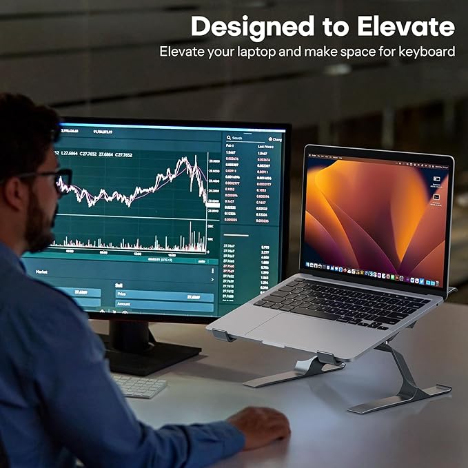 - 【Strong Load Capacity】The laptop stand is made of high-strength aluminum alloy, sturdy and durable, with a load-bearing capacity of up to 5 kilograms, so you don't need to worry about your laptop tilting or shaking during use