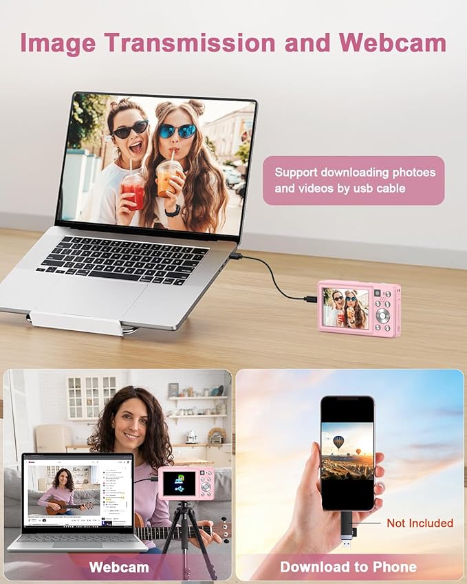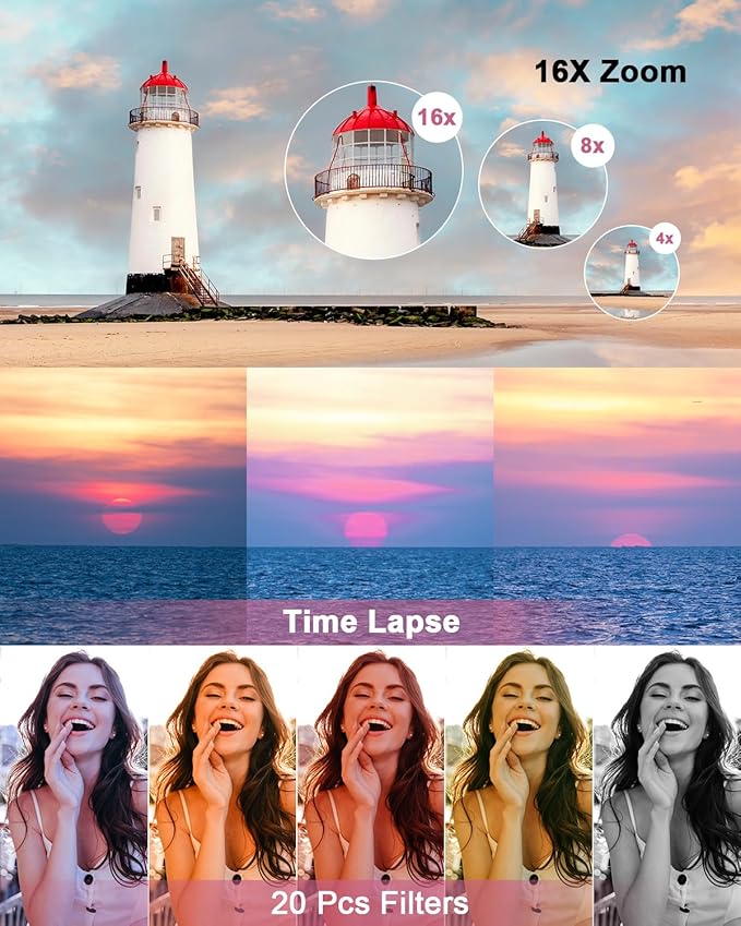 - 【Multi-Functional & Easy File Transfer】Packed with creative options, the camera for photography supports anti-shake, 16X zoom, time-lapse, slow motion, continuous shooting, white balance, ISO adjustment, filters, and metering. Connect via USB to use it as a high-quality webcam for live streaming, or switch to MSDC mode for fast image transfer to your computer.