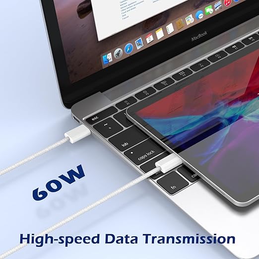 - 10Feet/3M Braided Type C Charging Cable: 10 Feet long USB C charging cable made of high-quality woven materials, more sturdy and durable.Supports PD 3.0 fast charging with a maximum speed of up to 20V/3A (60W), and simultaneously supports 480Mbps synchronization/data transmission speed. The 10-foot length is sufficient to make it convenient for you to charge your devices in your bedroom, on the sofa or in the office