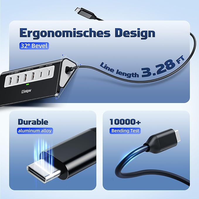 - Wide Compatibility: intpw usb adapter for macbook air is compatible with almost type-c devices such as MacBook Pro/Air, MacBook M1, M2,M3, iMac, iPad Pro, iPhone 16/15 Series etc. Note: Doesn't unplug or plug the PD charger when using the usb hub usb c. This prevents the device from being disconnected, the HDMI connection screen is not displayed, and data transferred from external USB devices is lost