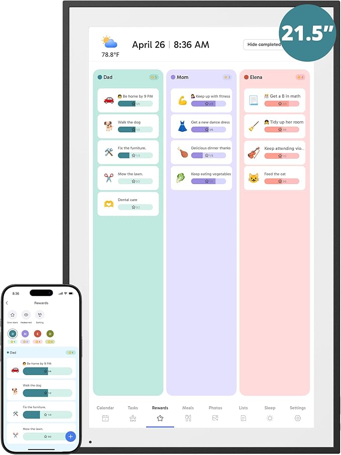 - Bring Fun to Family Chores with an Interactive Calendar:Tired of nagging about chores? This electronic calendar’s customizable task and reward interfaces turn mundane tasks into exciting challenges. Award stars for completed goals, and watch as kids and adults alike become motivated to contribute, fostering teamwork and a sense of accomplishment at home