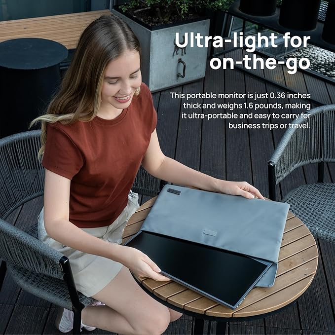 - Ultra Slim Design: Designed for easy travel, ARZOPA portable monitor is lightweight and compact. Weighing only 1.6lb, it boasts a slim profile with thicknesses of 0.35-inch
