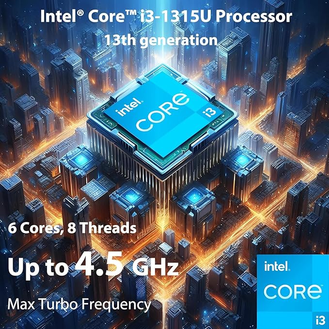 - 【6-Core 13th Intel Core i3-1315U】Up to 4.5GHz Max Boost Clock, 10 MB L3 Cache, 6 cores, 8 threads. With the latest platform technologies for everyday applications, easy connectivity and performance optimization, the Intel Core i3-1315U processor enables productivity and play with 6 cores and 8 threads.