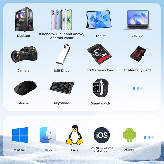- 【Ultra-Slim & Portable, Broad Compatibility】 Weighing just 0.37 lbs (approx. 168g), it's as slim as a business card holder and easily fits in your pocket or bag. Fully compatible with Windows, macOS, Linux, Android, and iOS systems, it works plug-and-play on desktops, laptops, smartphones, smart TVs, and even gaming consoles—no driver installation required.