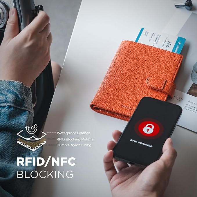 - RFID/NFC Blocking Passport Wallet- Passport holder for women features advanced RFID/NFC blocking technology, protecting your valuable credit card information and travel documents from electronic theft.