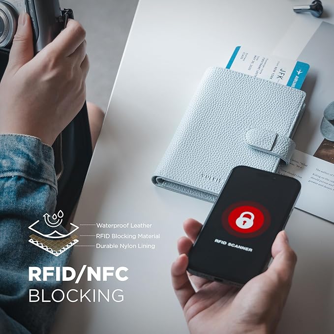 - RFID/NFC Blocking Passport Wallet- Passport holder for women features advanced RFID/NFC blocking technology, protecting your valuable credit card information and travel documents from electronic theft.