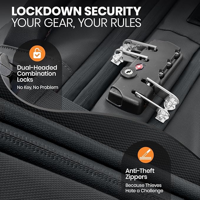 - SECURITY UPGRADE: This vacuum backpack travel is designed with a STA double-headed combination lock that locks the laptop compartment and the main compartment at the same time, protecting your valuables while ensuring quickly pass through security check —preventing baggage being detained due to lock,saving you precious time. The anti-theft zipper can effectively prevent the zipper from being pried. Multiple security protections make your business trip more worry-free and focus on your journey
