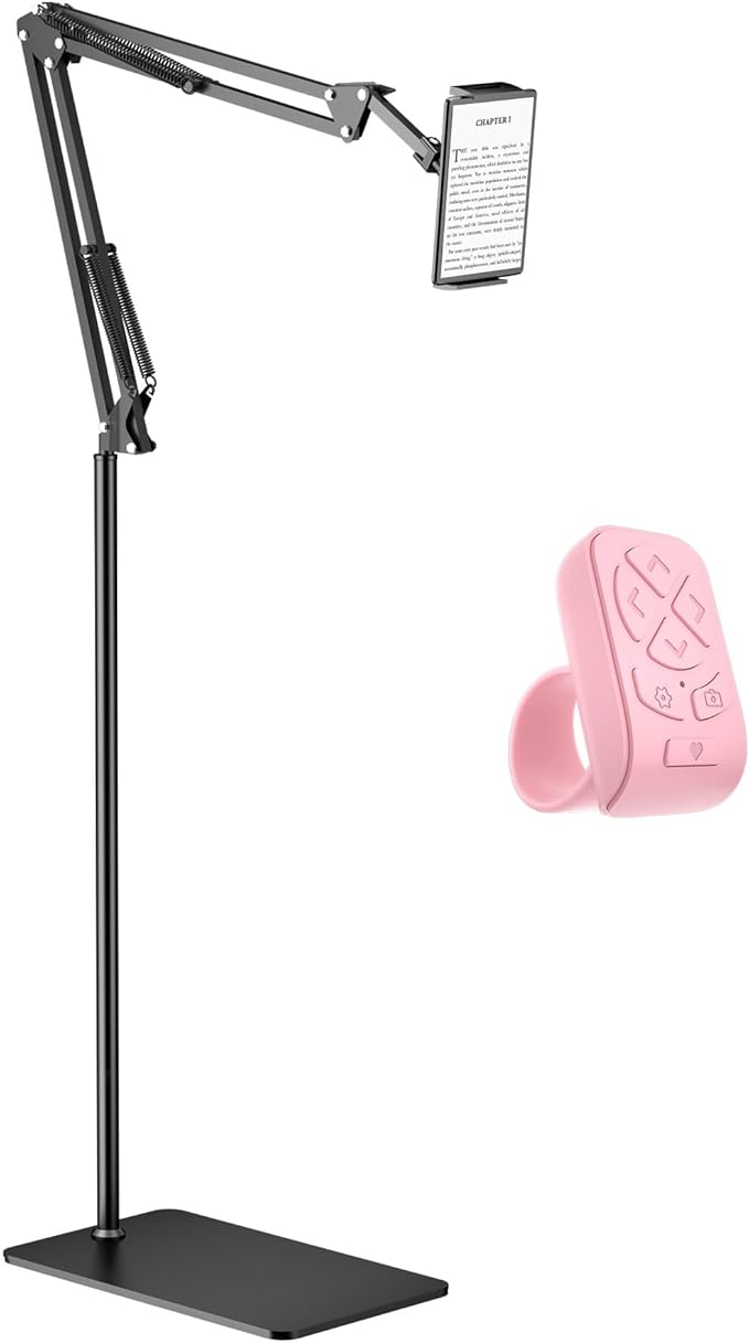 Floor Fire Tablet Stand for Reading in Bed with Page Turner Remote, Fire HD 8 9 10 Max Tablet Holder Accessories with Scrolling Ring Clicker Compatible with iPad iPhone Android Phones