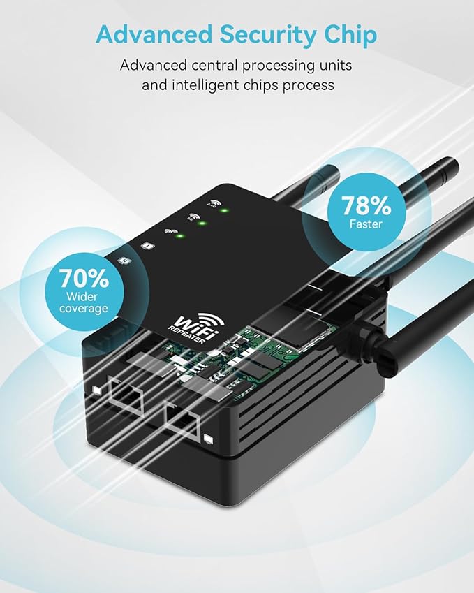 - Superior Coverage: The WiFi range extender features a powerful Chipset that better extends your wireless signal up to 12880 sq.ft The WiFi Range Enhancer penetrates walls and floors and extends your Internet wireless network to every corner of your home, perfect for online gaming, video chatting.