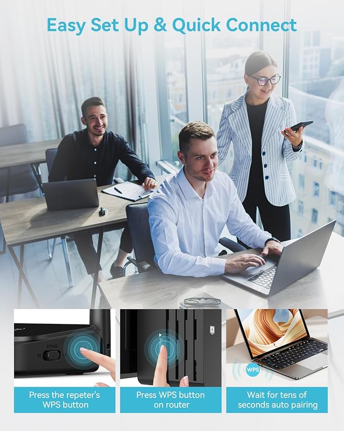 - Convenient to Use: This WiFi repeater boasts a wall-mountable design that saves space. Once connected to a power source, simply tap the WPS button to pair the WiFi repeater with a WiFi router or modem.