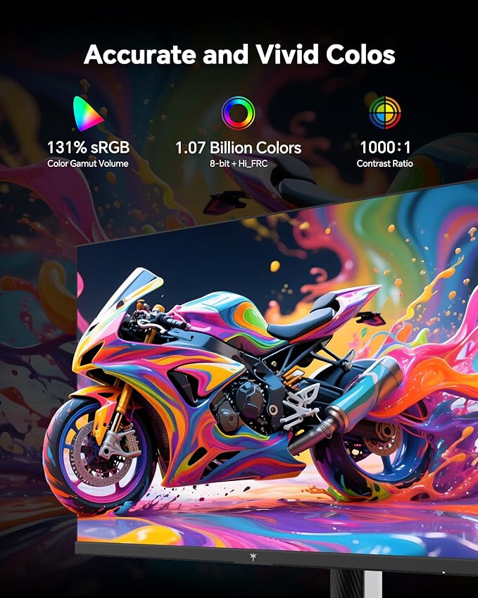 - Exceptional Picture Quality: Equiped with fast IPS panel, this pc monitor gaming offers 131%sRGB color gamut, 1.07 billion colors, HDR 400, 450cd/m² brightness and 1000:1 static contrast ratio, which enables you enjoy clear, vibrant and stunning visual effects.