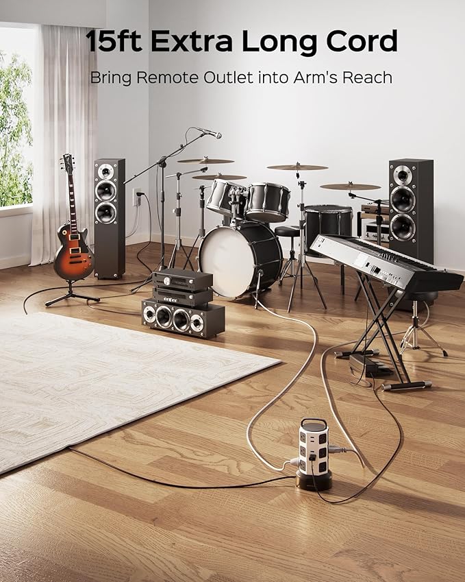 - ▶【Semi-Retractable 15ft Cord】With the 15ft pure copper retractable extension cord, you can roll up the cord by rotating the tower, which tidies up your desk and you can set the cord length to your need. (10ft retracts into the base for a tidy appearance, 5ft remains extended to provide flexibility for various setup distances.)