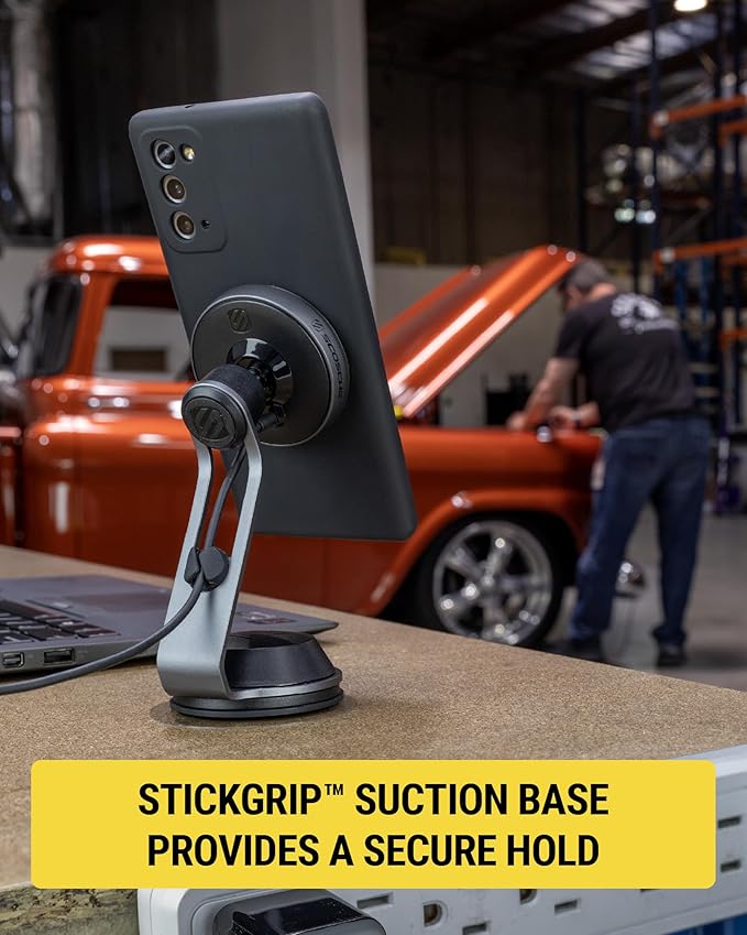 Scosche MagicMount Charge Pro Qi2 Home/Office MagSafe Suction Mount, 15W Fast Wireless Charger Magnetic Cell Phone Holder Compatible with iPhone 16/15/14/13/12 Pro Max Plus and Samsung Galaxy S25
