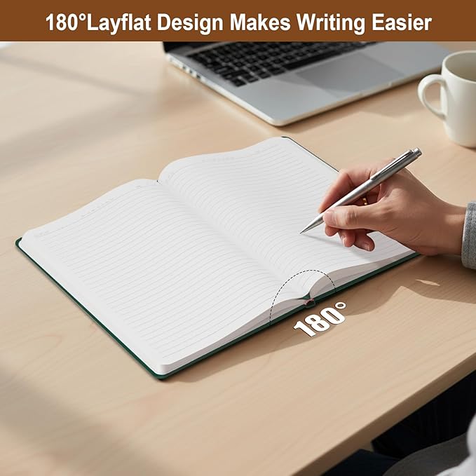 - 【 Lay-Flat Hardcover for Easy Writing】 Featuring a durable hardcover and lay-flat binding, this writing notebook opens completely to provide a flat, comfortable writing surface from edge to edge, ideal for long sessions.