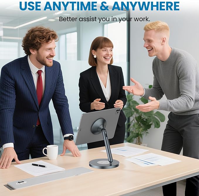 - 2-in-1 Stand: Attach the included magnetic ring to the back of your tablet to transform it into a magnetic stand compatible with all tablets; it also functions as a MagSafe wireless charging phone stand, providing fast charging for your iPhone devices. This versatile magnetic iPad stand offers a brand-new multi-device experience.
