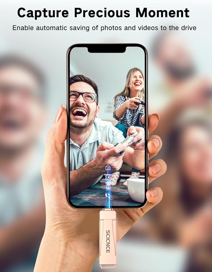 SCICNCE 128GB Flash Drive Intended for iPhone, USB Memory Stick Storage Backup for Photos Videos, Plug and Play No APP Required, Compatible with iPhone iPad Android and Computers (Rose Gold)